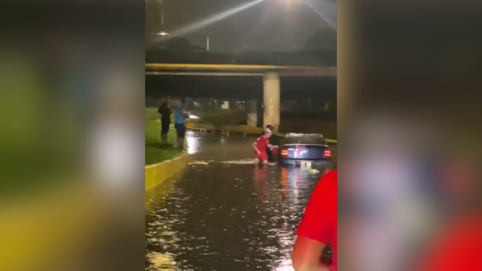 Dos personas fueron rescatadas, en medio de la tormenta, debido a que el auto en que circulaban quedó varado por la crecida del río Suquía.
