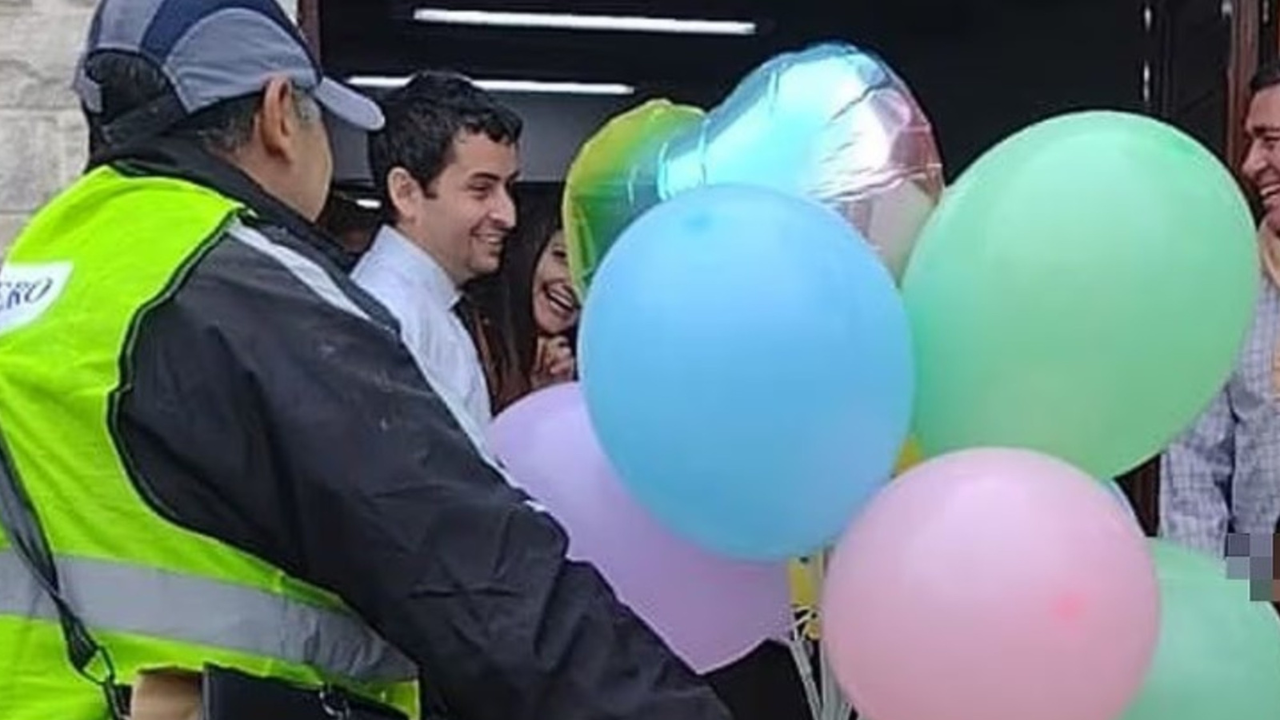 Para esta ocasión, el juez se vistió de cartero y en una bicicleta con globos de distintos colores, como le gustan a la niña, llegó a la puerta del juzgado donde lo esperaban ella, sus padres y parte de su equipo de trabajo.
